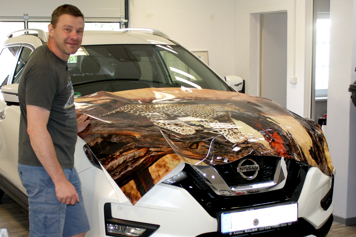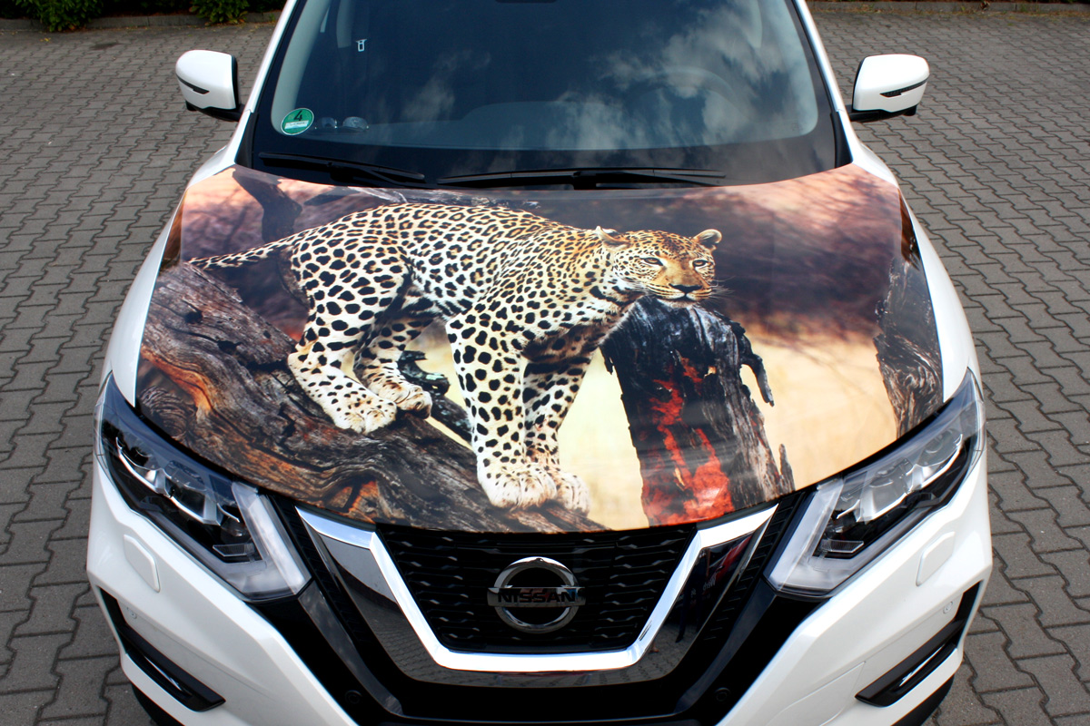 Schöner Kundenauftrag, einen neuen Nissan X-Trail vom Autohaus Raurer in unserer neuen Werkstatt mit einem Leoparden beklebt.