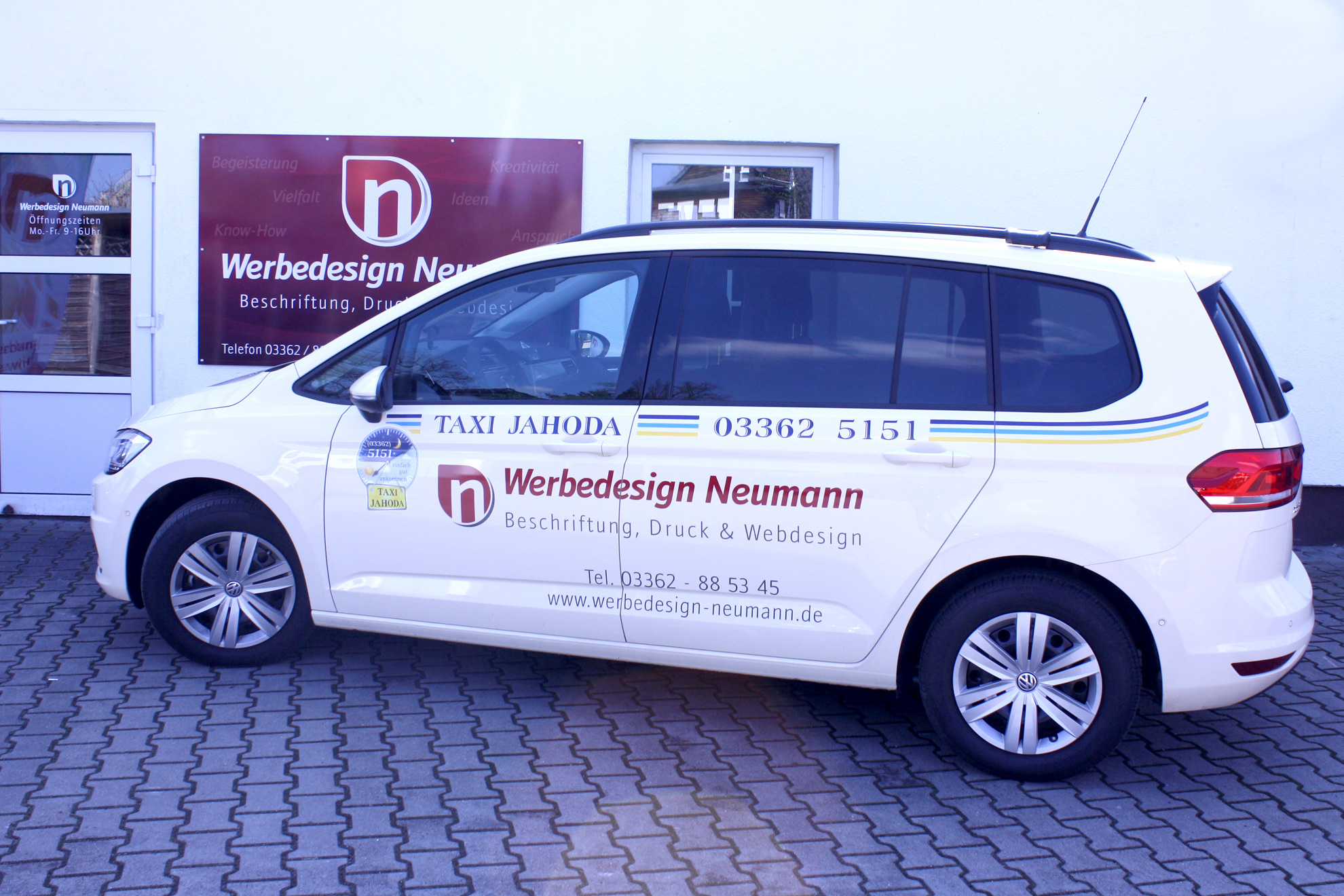 Taxibetrieb Jahoda und Werbedesign Neumann haben sich entschieden miteinander zu kooperieren. Firma Jahoda ist langjähriger Kunde von Werbedesign Neumann und so war es naheliegend den neuen Tiguan auch mit Werbung von Werbedesign Neumann zu versehen.